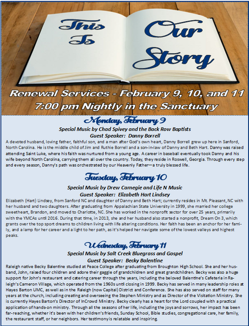 Raleigh native Becky Balentine studied at Peace College after graduating from Broughton High School. She and her husband, John, raised four children and adore their gaggle of grandchildren and great grandchildren. Becky was also a huge support for John's restaurant and catering career through the years, including the beloved Balentine's Cafeteria in Raleigh's Cameron Village, which operated from the 1960s until closing in 1999. Becky has served in many leadership roles at Hayes Barton UMC, as well as in the Raleigh (now Capital) District and Conference. She has also served on staff for many years at the church, including creating and overseeing the Stephen Ministry and as Director of the Visitation Ministry. She's currently Hayes Barton's Director of InCrowd Ministry. Becky clearly has a heart for the Lord coupled with a practical application of hands-on ministry. Through all the seasons of her life, including the joys and sorrows, her impact has been far-reaching, whether it's been with her children's friends, Sunday School, Bible studies, congregational care, her family, the restaurant staff, or her neighbors. Her testimony is relatable and inspiring.
